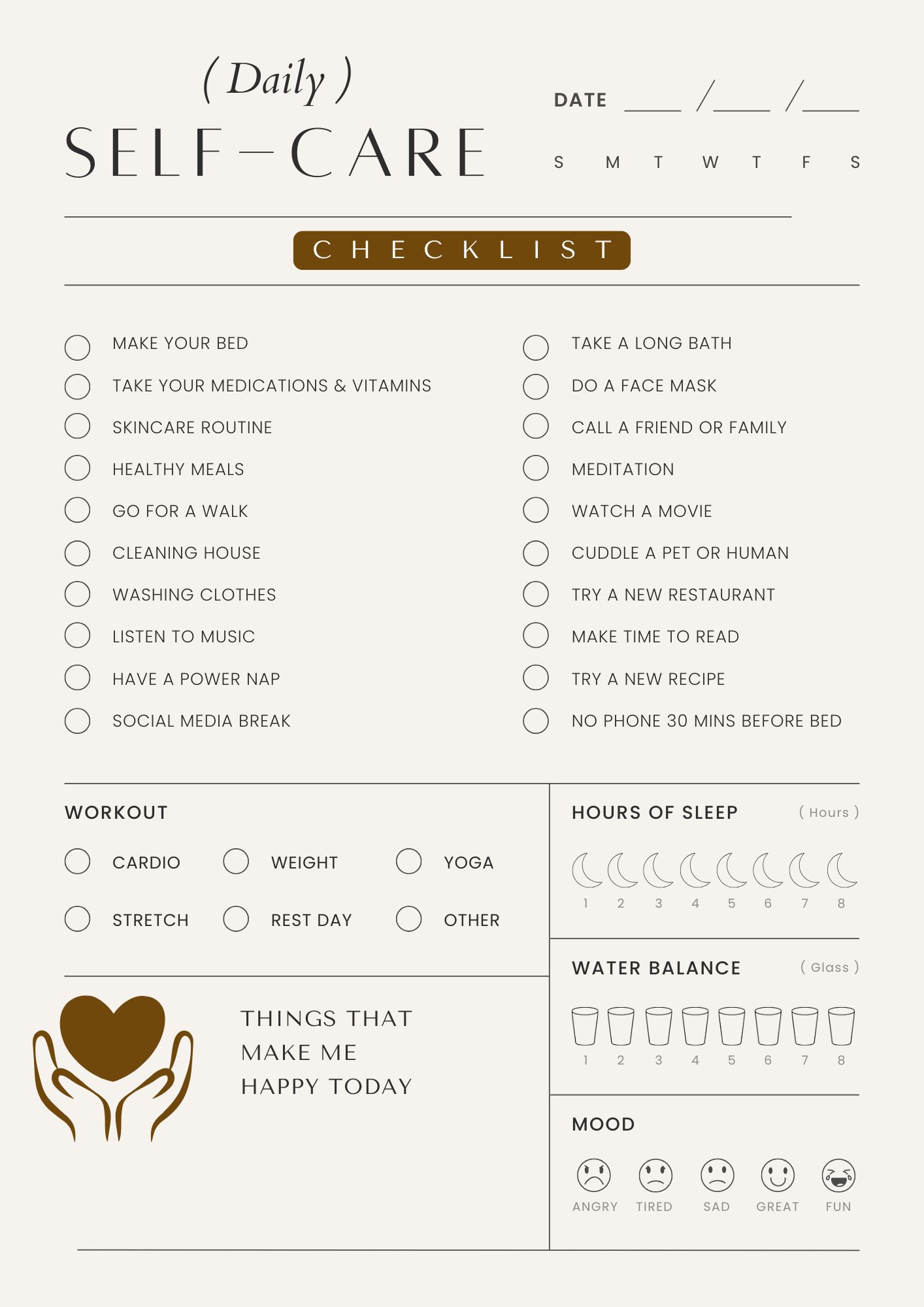 Download this Daily selfcare checklist and make your day more eventful and prodcutive.
